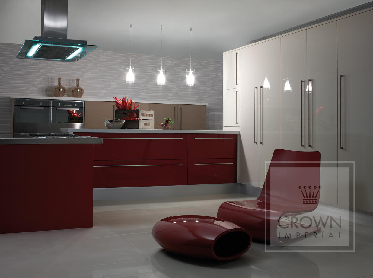 This Kitchen is spells cutting edge, and the rich Marsala cabinets against the grey look just fabulous. Gotta love that chair and table!